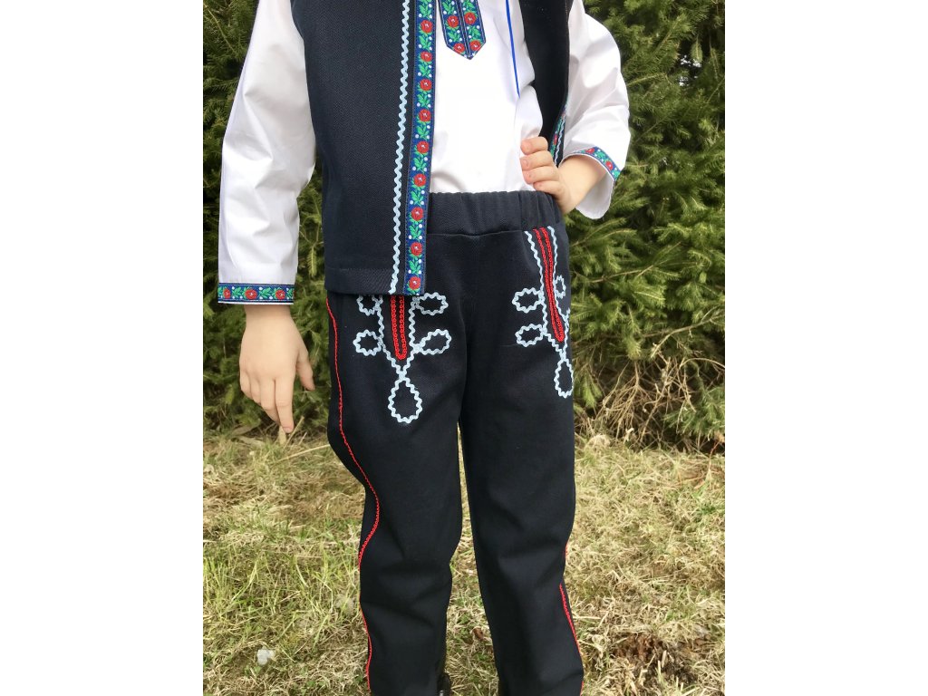 CHLAPČENSKÉ Chlapčenské nohavice Folklórne nohavice tmavomodré (bielo-červené zdobenie)