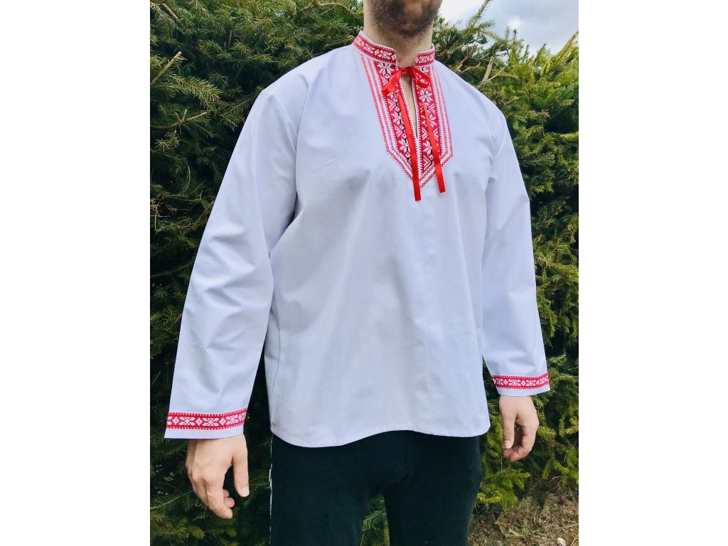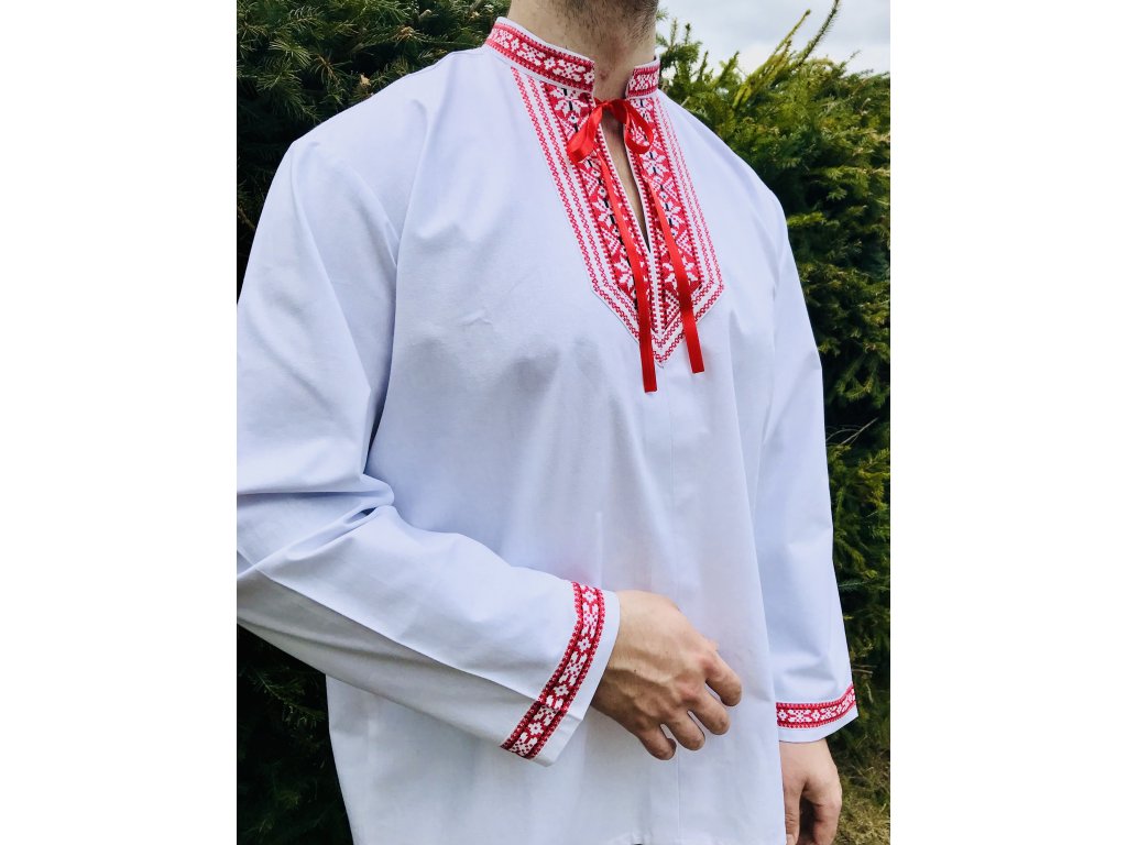 Pánska košeľa s folklórnym motívom - zdobená okolo krku a na rukávoch folklórnym motívom z bavlny.