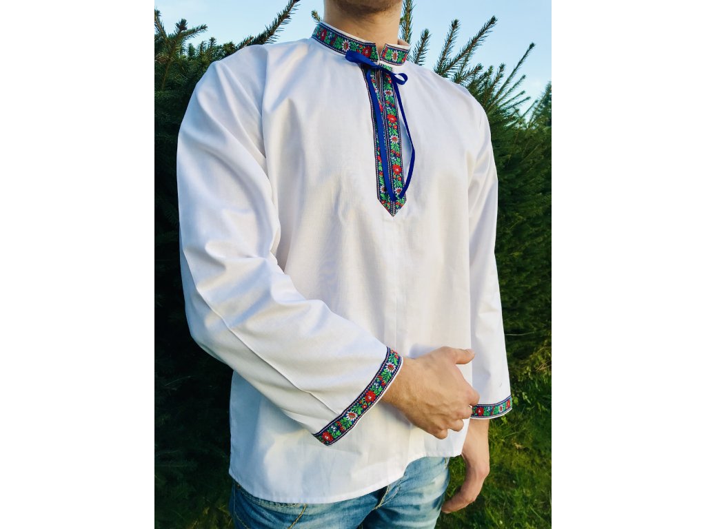 Pánska košeľa s folklórnym motívom - zdobená okolo krku a na rukávoch folklórnym motívom z bavlny.