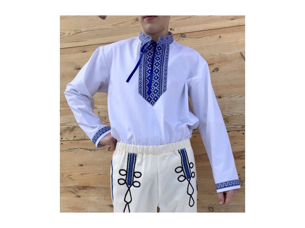 Pánska košeľa s folklórnym motívom - zdobená folklórnym motívom okolo krku a na rukávoch. Šitá z bavlny, príjemnej na nosenie. Pri krku sa dá stiahnuť stužkou.