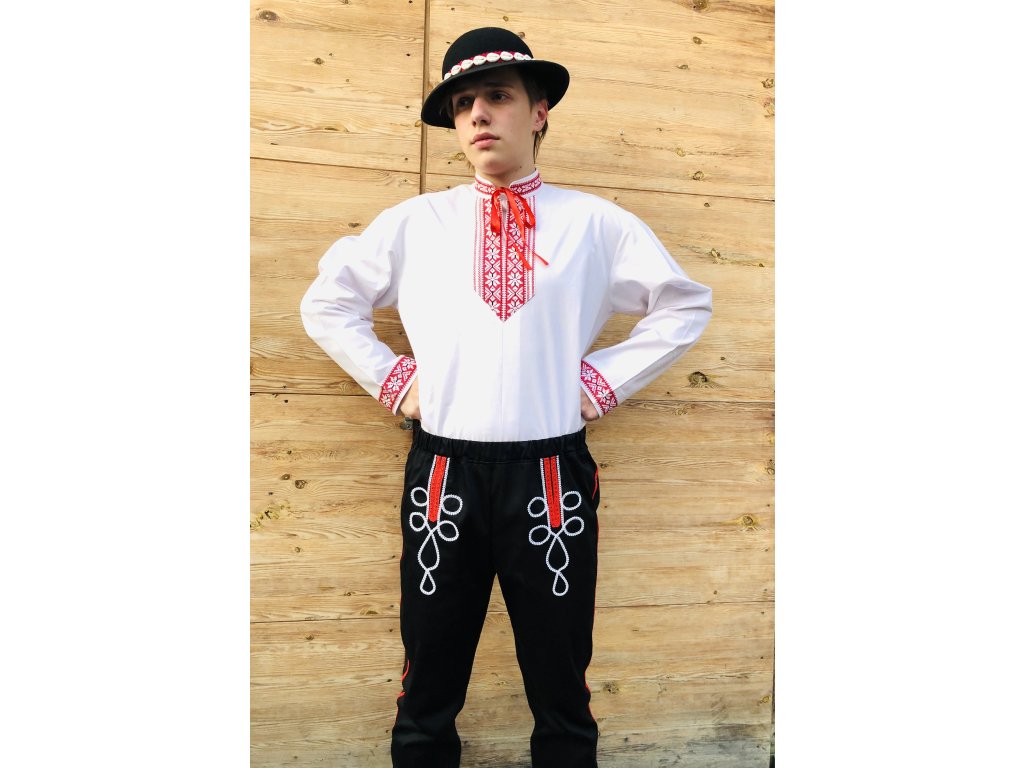 Pánska košeľa s folklórnym motívom - zdobená okolo krku a na rukávoch. Šitá z bavlny, príjemnej na nosenie. Pri krku sa dá stiahnuť stužkou.
